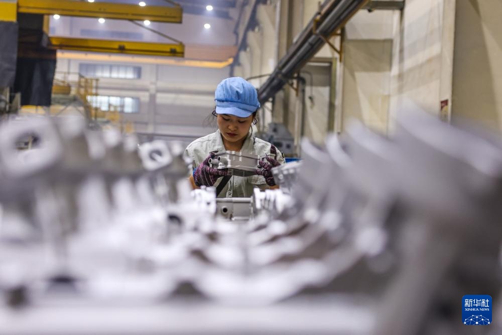 10月16日,工人在宁波市江北区爱柯迪股份有限公司的生产线上工作。新华社记者 江汉 摄