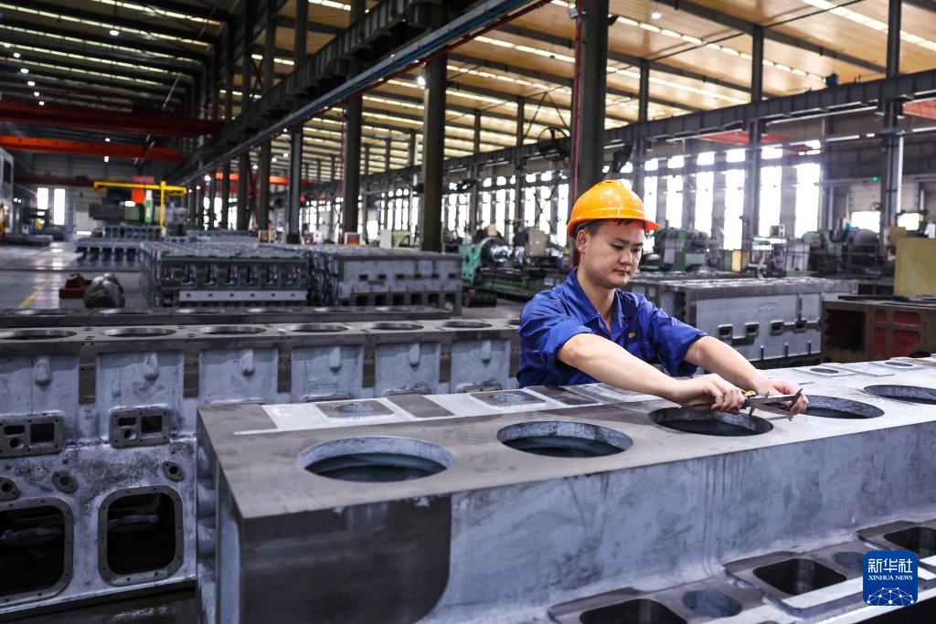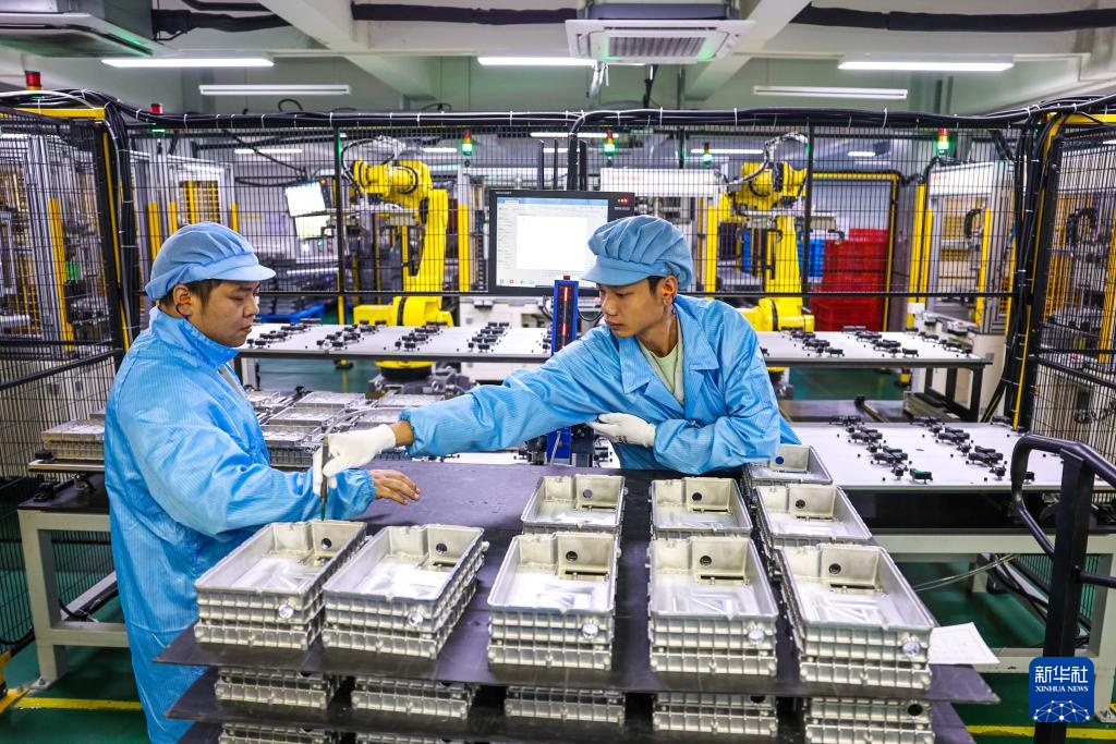 10月16日,工人在位于宁波市江北区的宁波中策动力有限公司生产线上工作。新华社记者 江汉 摄