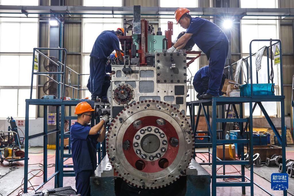 10月16日,工人在位于宁波市江北区的宁波中策动力有限公司车间内装配产品。新华社记者 江汉 摄